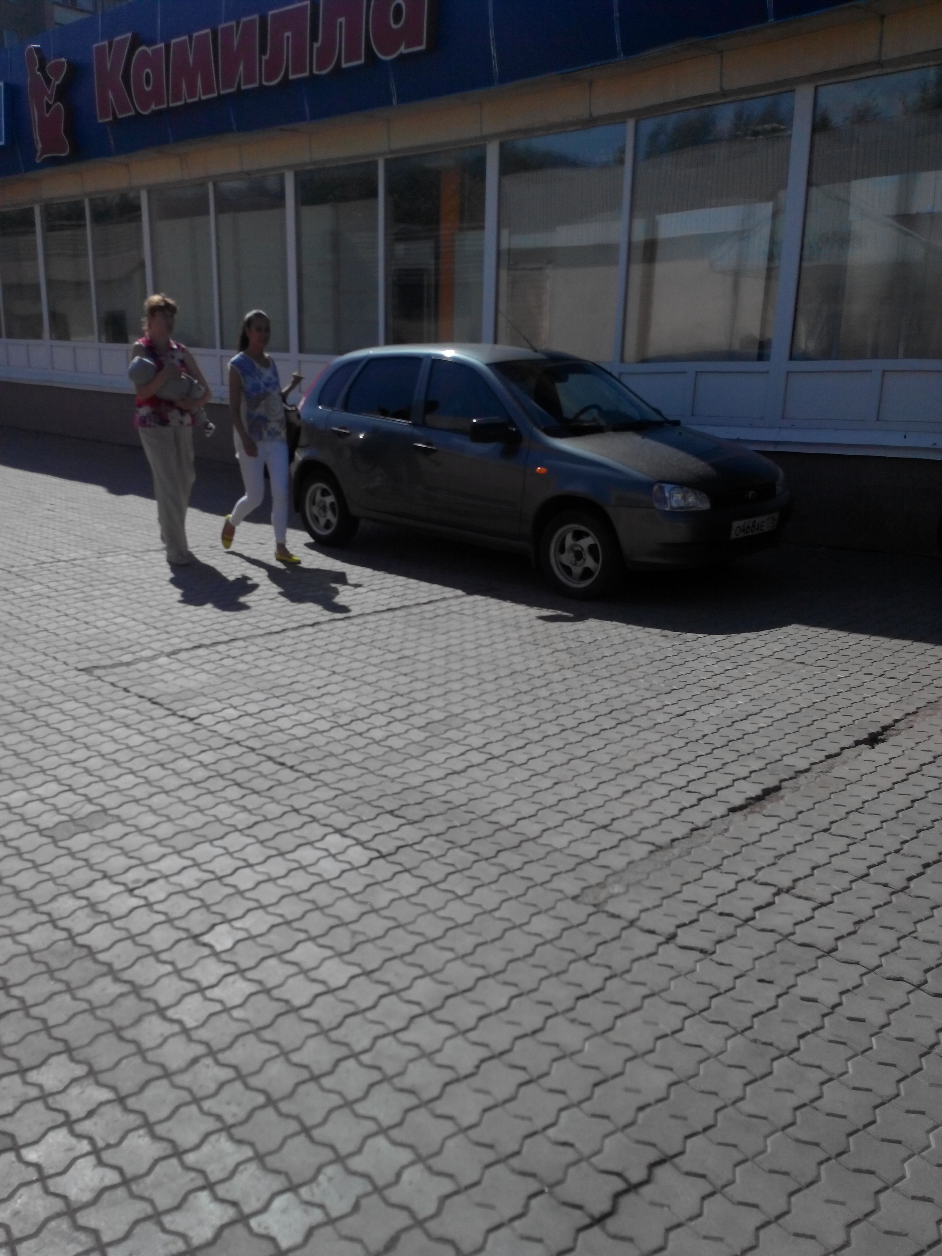 Что  сказать о данном владельце вот этого автомобиля, то он так сильно устал в обеденный перерыв, что не удосужился оставить машину на специальной парковке, что располагается возле проезжей части и потому решил подъехать прямо чуть ли не к крыльцу продуктового магазина "Камилла".